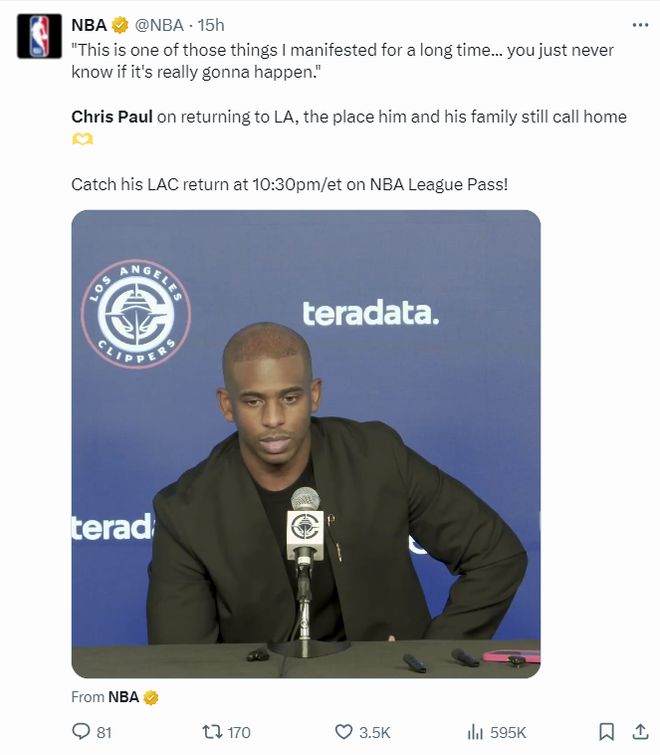 保羅的表現(xiàn)當(dāng)然引發(fā)了全美熱議,賽后40歲的保羅談到這場(chǎng)快船首秀:這是我一直期待的事情,但你永遠(yuǎn)無(wú)法確定它是否真的發(fā)生,回到這里對(duì)于我來(lái)說(shuō)意義非凡,這里是我和家人一直稱之為家的地方。